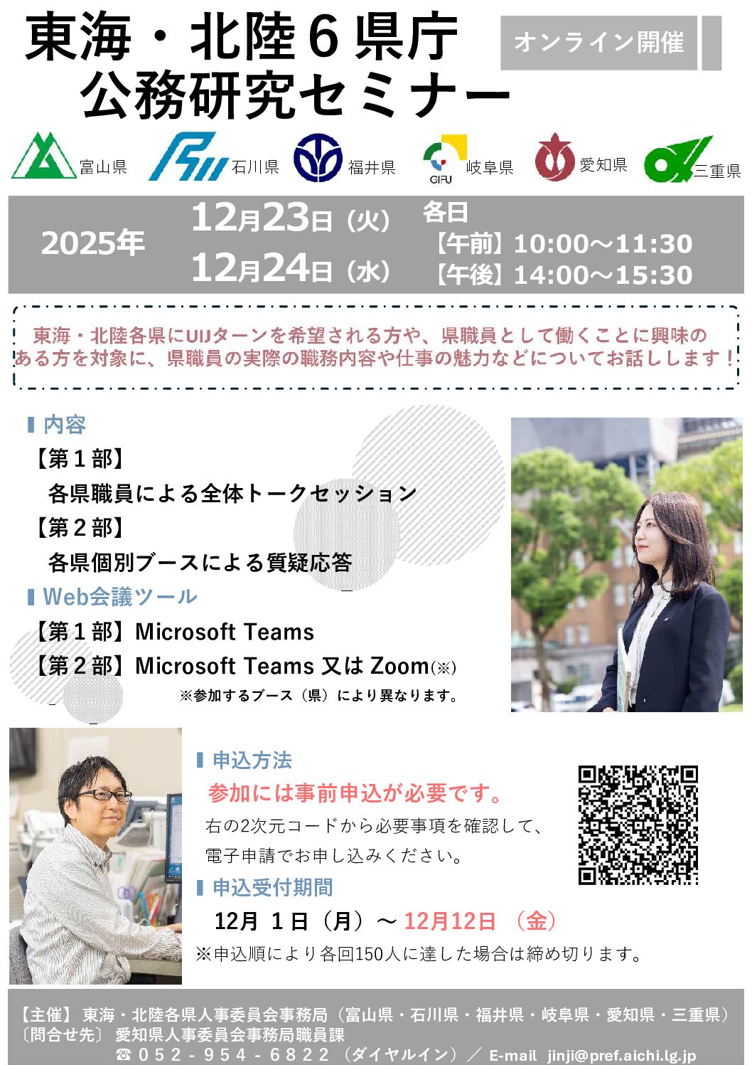 令和7年12月23日・24日東海・北陸6県庁公務研究セミナー(オンライン開催)