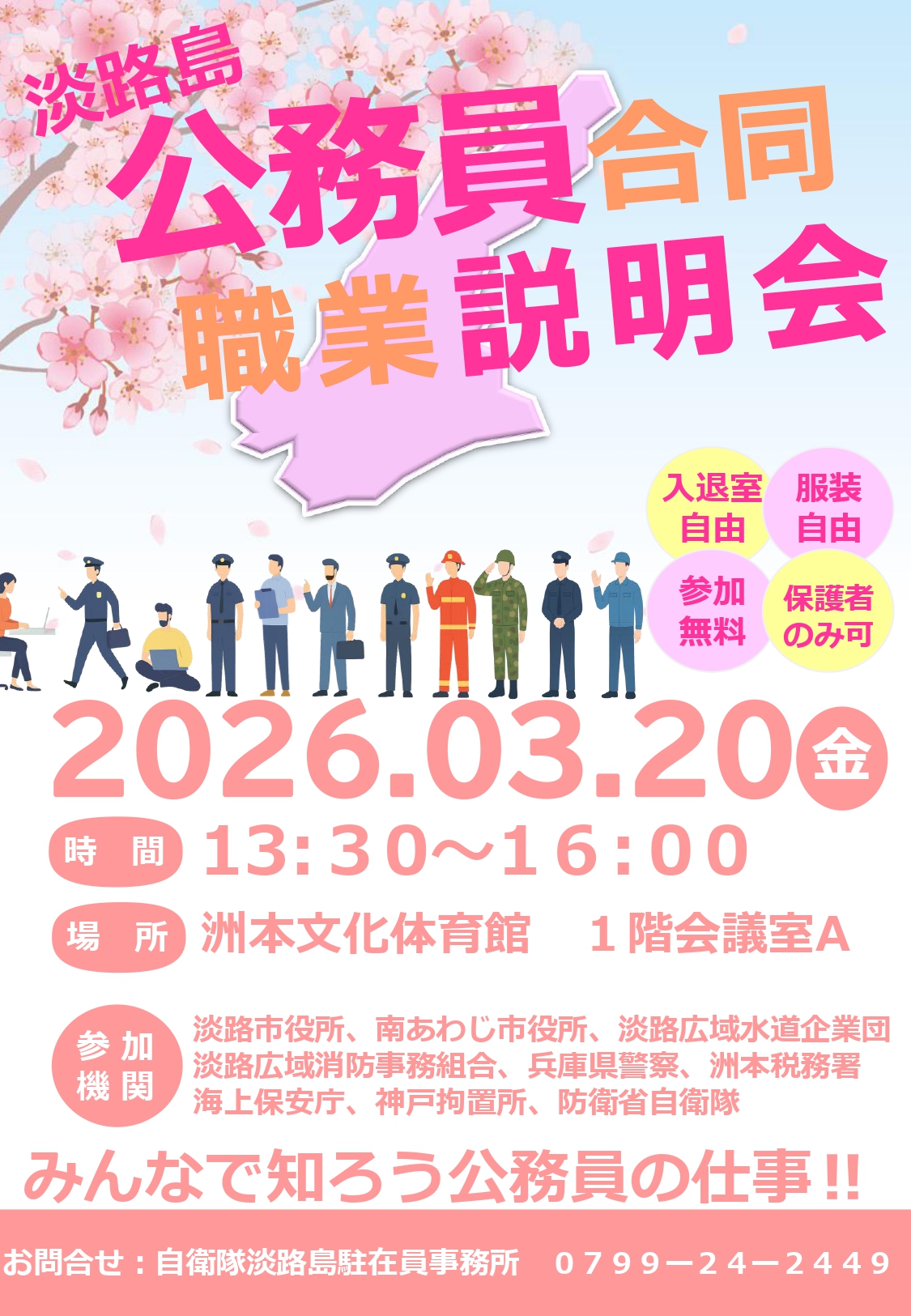 こちらの公務員説明会情報は、団体様のご依頼により掲載させていただいております。情報の修正のご依頼、削除等のご依頼は「公務inお問い合わせフォーム」の詳細にその旨を記載し、送信をお願い致します。