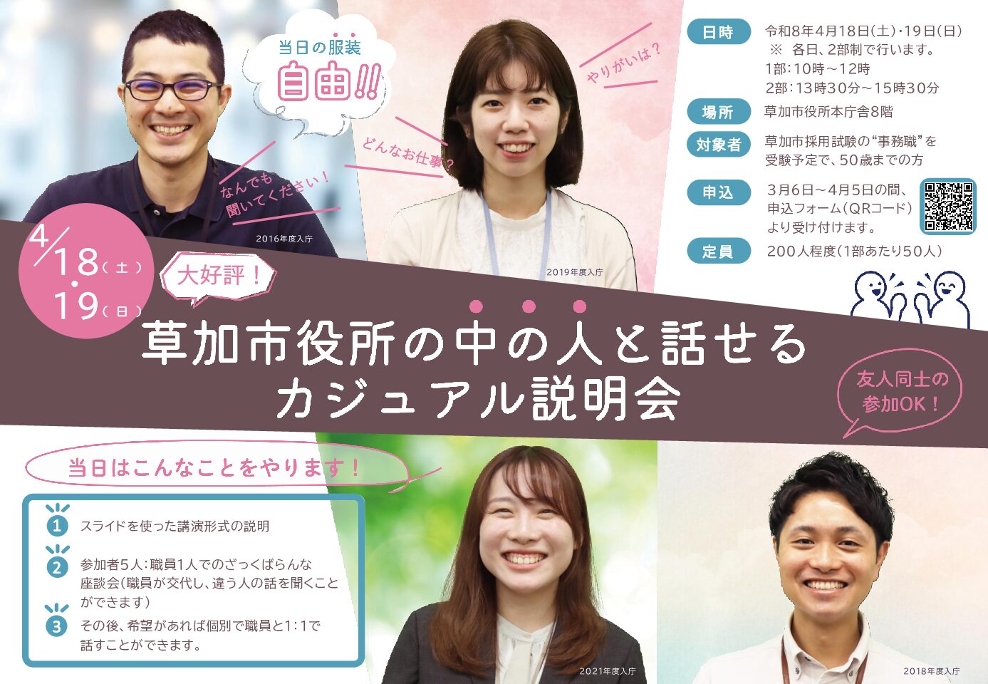 各説明会の5日前までに申し込みください。 |