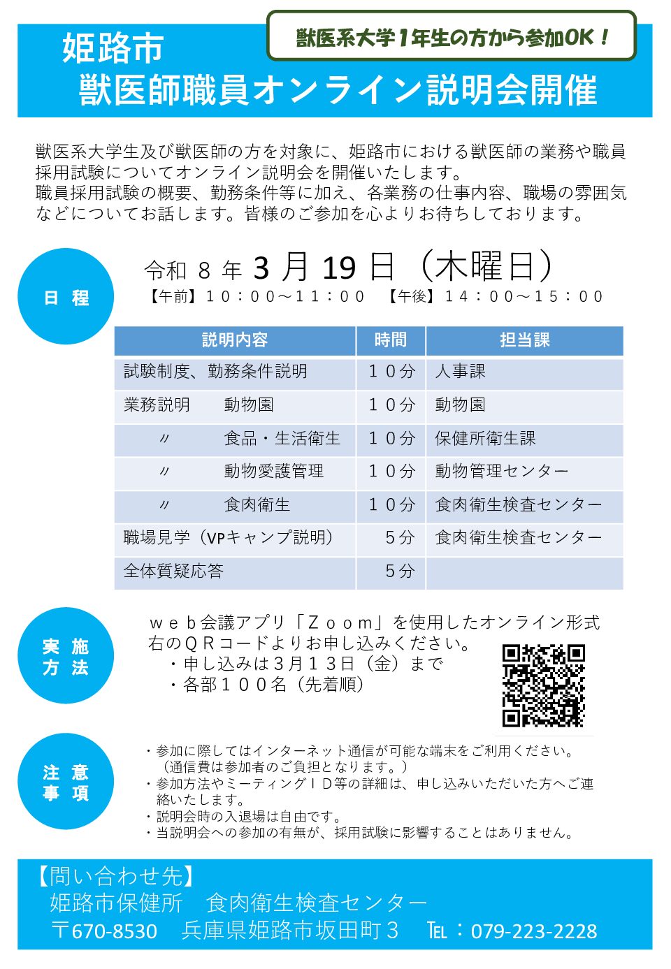 令和8年3月19日(兵庫県)姫路市獣医師職員オンライン説明会