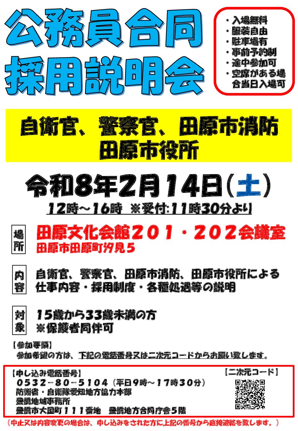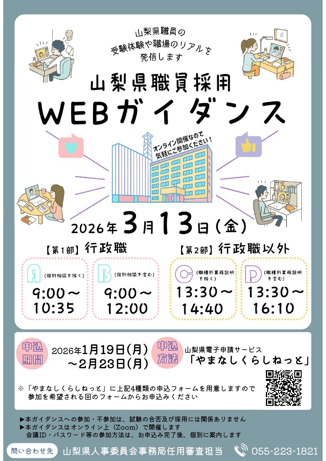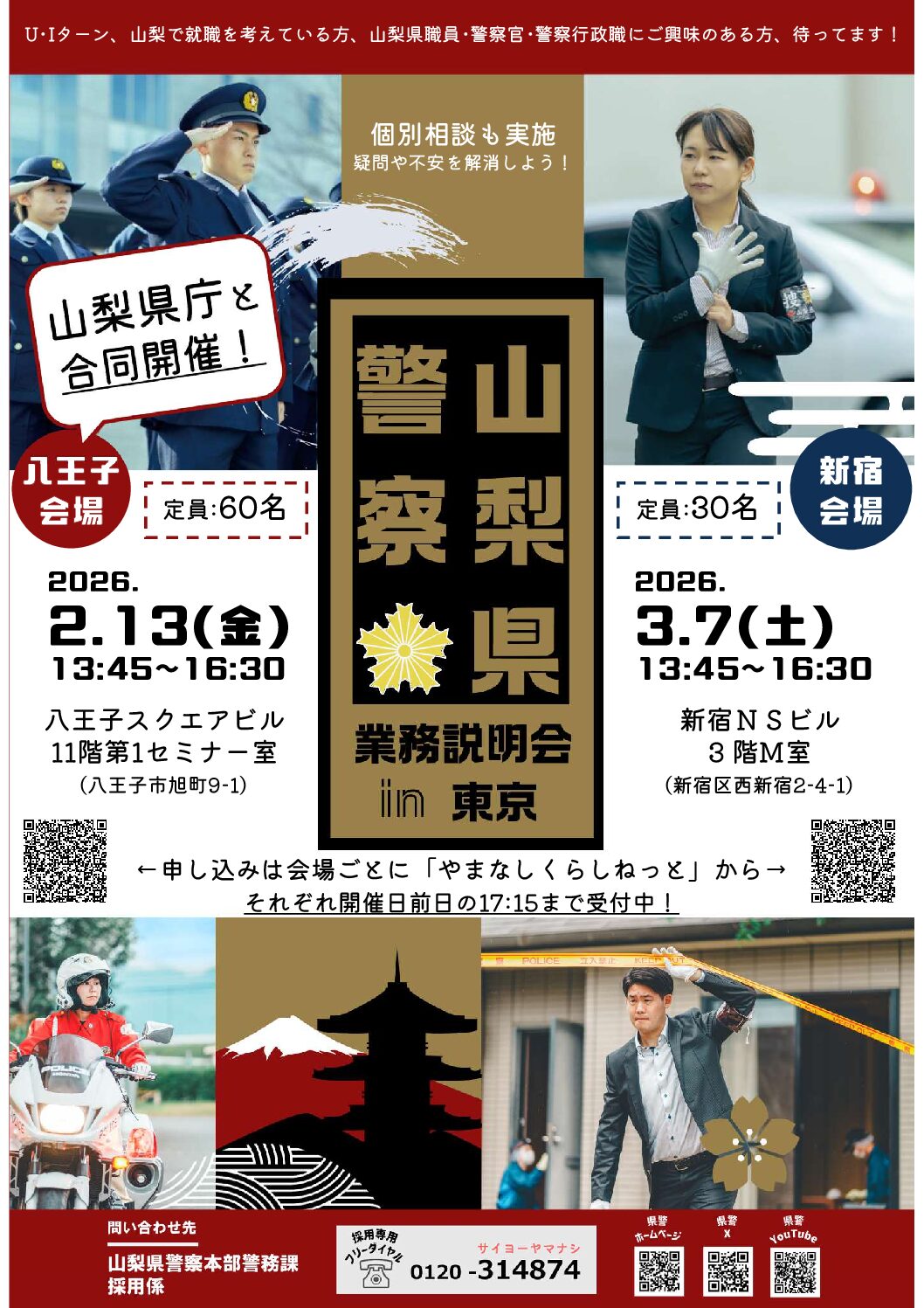 こちらの公務員説明会情報は、団体様のご依頼により掲載させていただいております。情報の修正のご依頼、削除等のご依頼は「公務inお問い合わせフォーム」の詳細にその旨を記載し、送信をお願い致します。